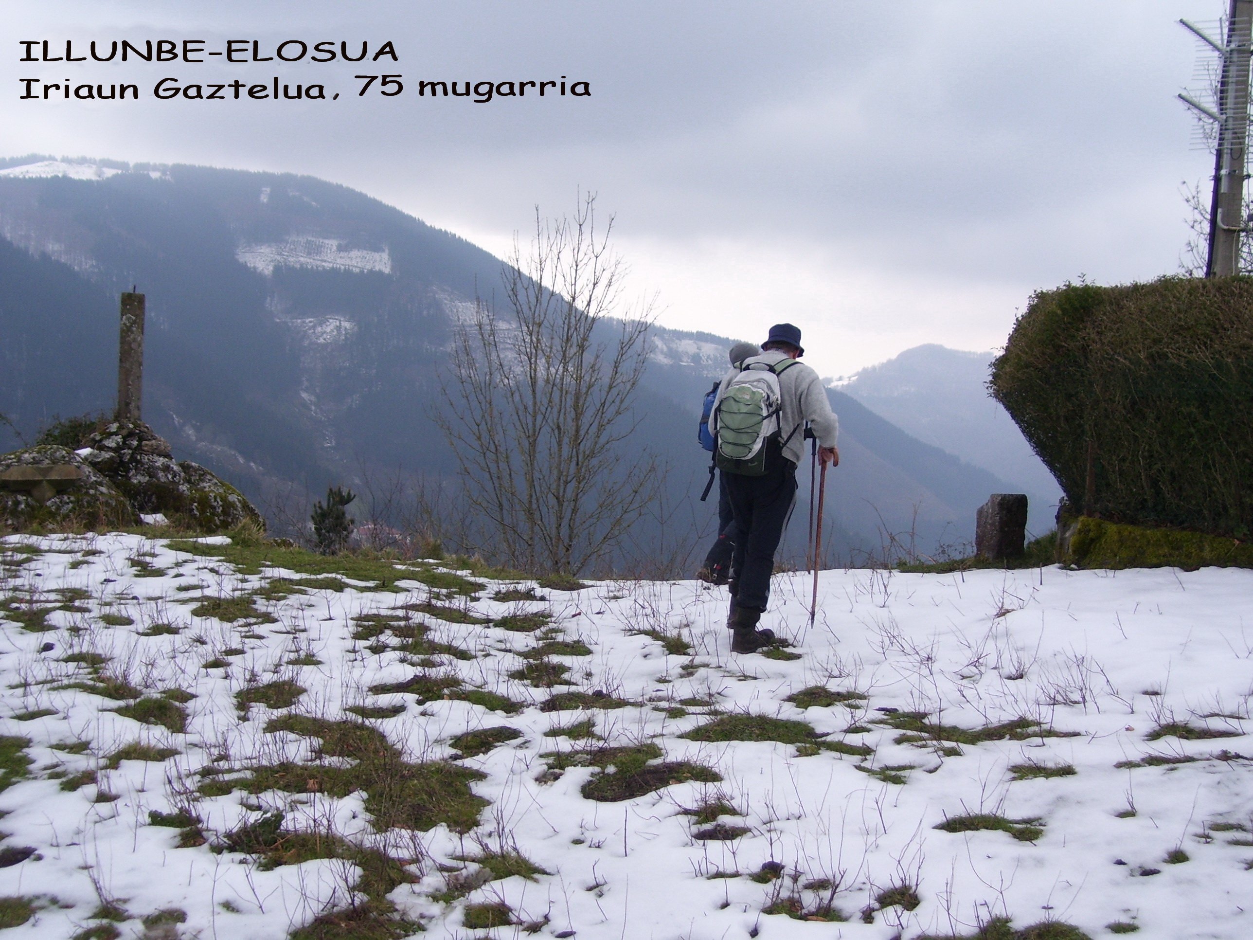 Bergarako mugarrien ibilbideak moldatu dituzten Polpol Mendizale Taldeko kideek eskainitako argazkia. Argazkian agertzen dena ibilbidearen hasiera eta amaiera da eta ez du zerikusirik mugarria kokatuta dagoen auzoarekin.
