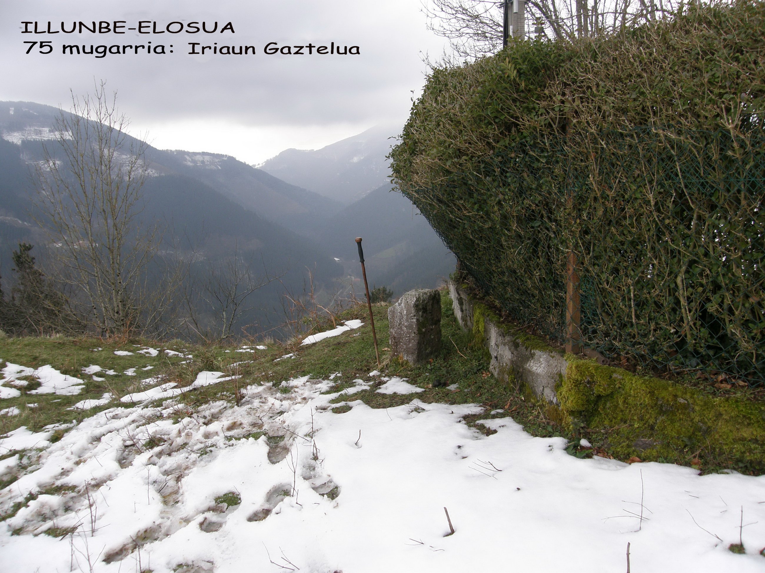 Bergara eta Azkoiti arteko mugarria. Mugarrian idatzita dagoen zenbakia: --. Polpol M.T.koek emandako zenbakia: 75. Mugarriaren izena 1939ko aktan: Gaztelua. Oharra: "V" eta "A" idatzita. Informazioa: Polpol Mendizale Taldea, mugarrien ibilbideak.